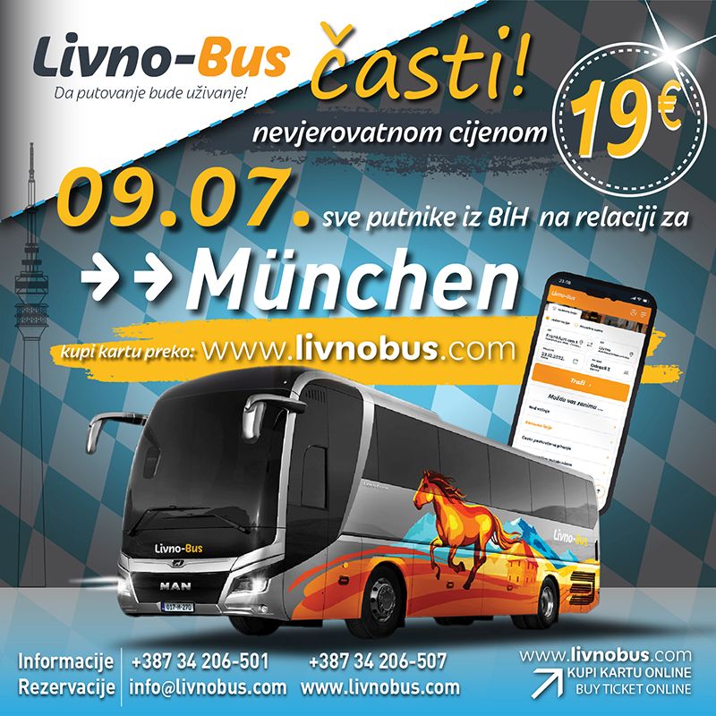 U nedjelju, 9. 7. Livno bus časti svoje putnike nevjerojatnom cijenom karte na međunarodnoj liniji za München.