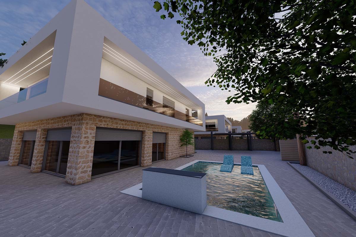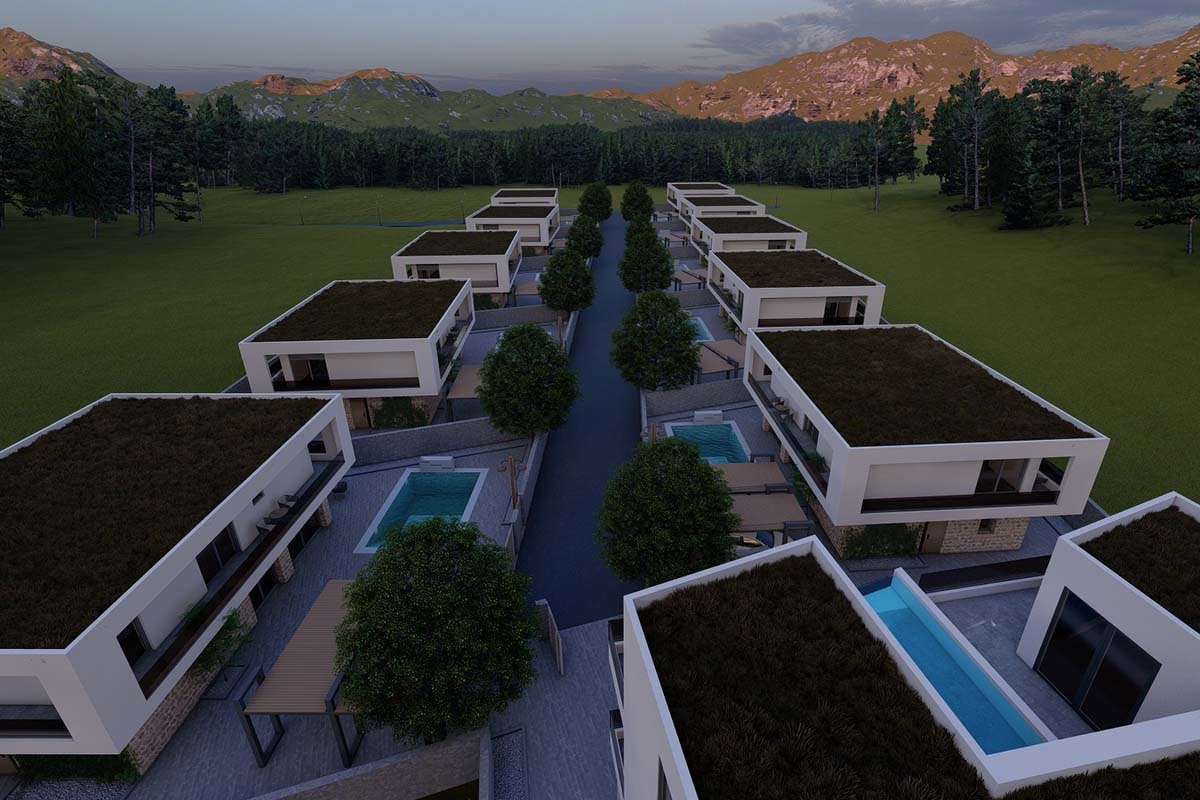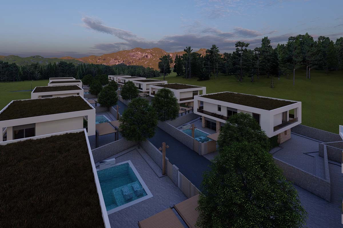 U srcu ovog slikovitog kraja, na mjestu koje simbolično nosi naziv “eleven eleven” ili “1111”, razvija se jedinstveno stambeno naselje od 11 stambenih jedinica, deset moderno opremljenih kuća s bazenima i pet apartmana u stambenoj zgradi. “1111″ predstavlja savršenu kombinaciju luksuza, komfora i savremenog dizajna.