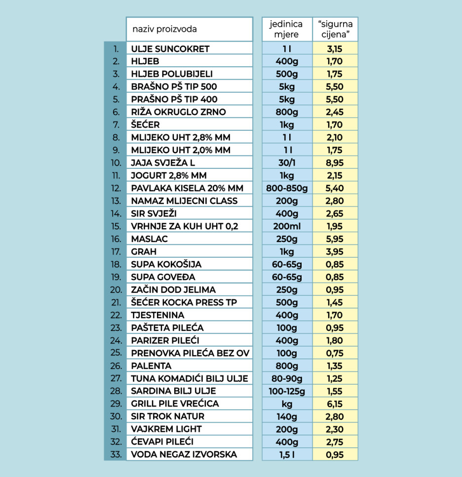 “Podsjećamo, ovaj projekat kao i prethodni nije osmišljen kako bi osigurali niske cijene za luksuzne proizvode, nego da socijalno osjetljivim kategorijama omogućimo da mogu omogućiti osnovne životne namirnice po prihvatljivim cijenama. U ovom valu projekta izostavljeni su artikli čija cijena svakodnevno raste na svjetskom tržištu poput kave. Cijene koje su zaključane ne mogu biti veće u razdoblju trajanja akcije”, navedeno je.