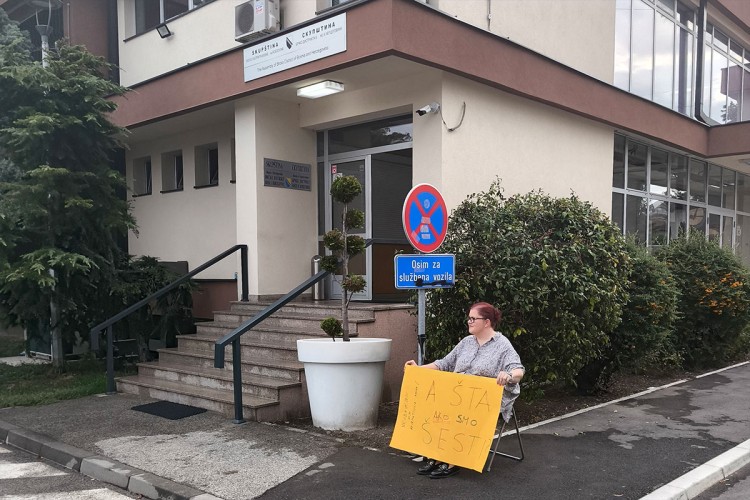 Ana Erkić Kotur, pravnica i aktivistica jutros je protestovala ispred Skupštine Brčko distrikta zbog nacrta Zakona o profesionalnoj rehabilitaciji, osposobljavanju i zapošljavanju osoba s invaliditetom.