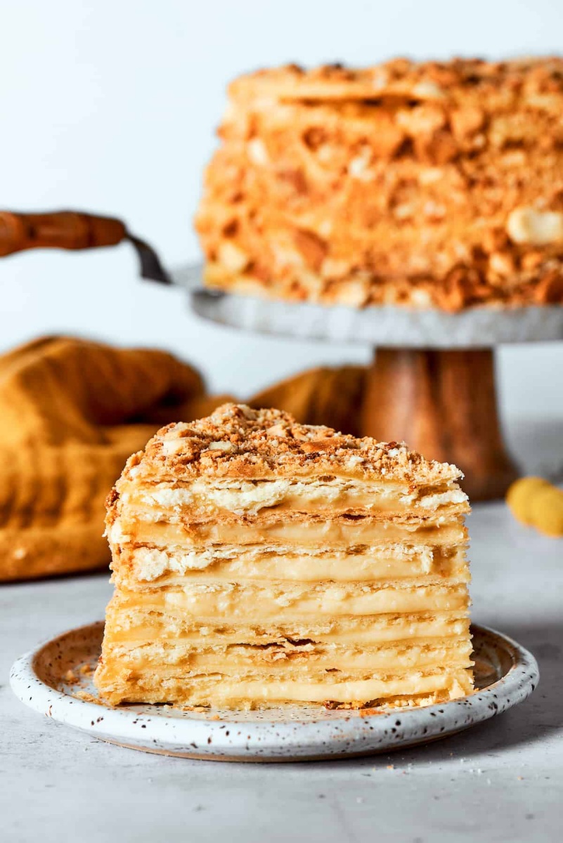Ova raskošna Napoleon torta prava je zvijezda svakog stola! Sastoji se od slojeva tankog, hrskavog lisnatog tijesta i bogate, svilenkaste kreme s vanilijom. Predivan klasik ruskog podrijetla, idealan za posebne prigode.