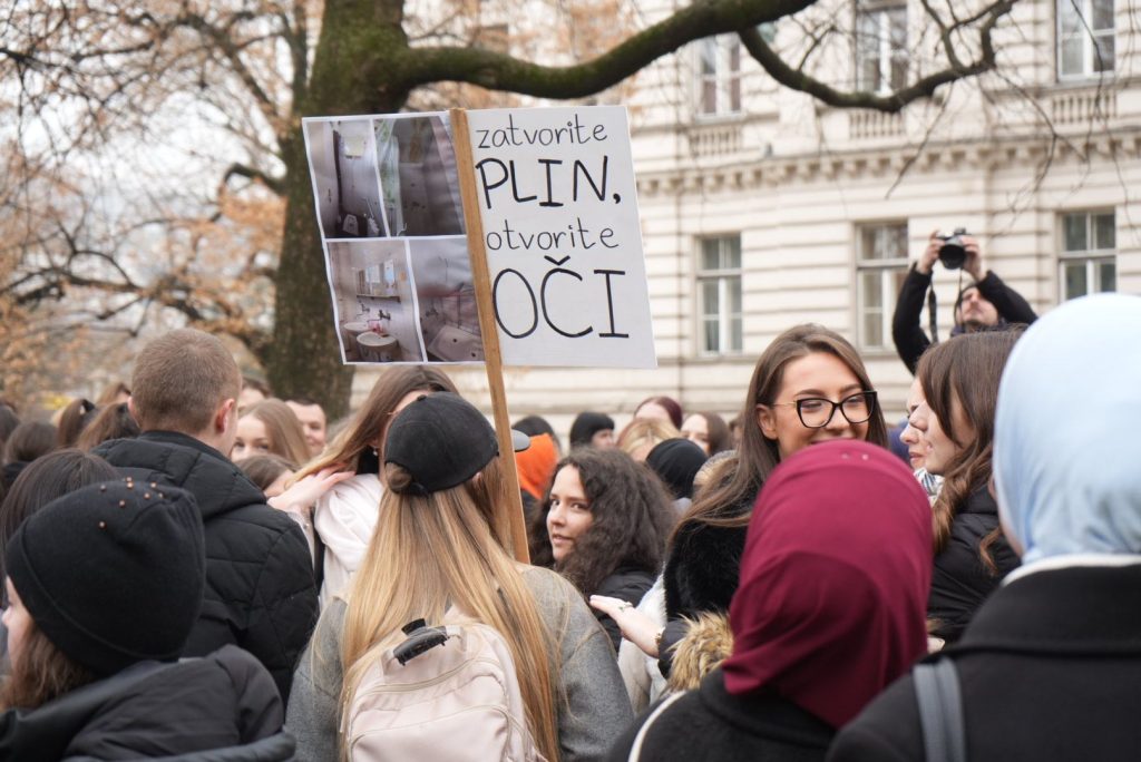 Stotine studenata sarajevskog Univerziteta, koji su smješteni u domovima “Bjelave” i “Nedžarići” pred zgradom Vlade Kantona Sarajevo okupili su se na protestu tražećiu da se konačno riješe problemi decenijski lošeg stanja i uvjeta u kojima žive.